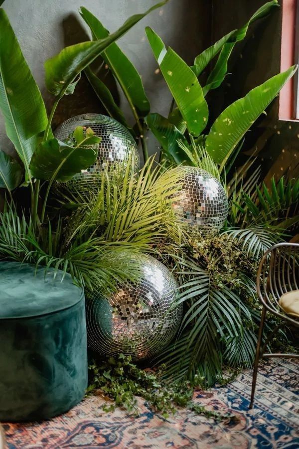 Choose the overall look and feel for your disco floral installation. Each style is intentionally designed to pair beautifully with suspended disco balls, light, and movement. Floral varieties and tones are selected seasonally to best match your chosen palette.